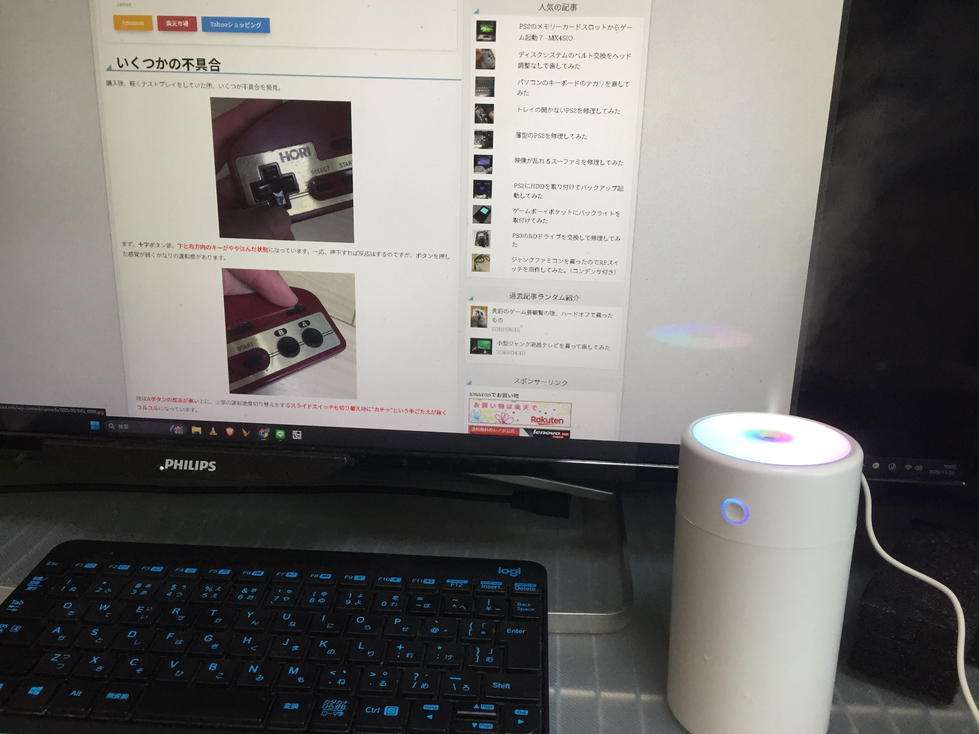 改めてですが、この加湿器はUSB駆動なのでどこでも使えるのが良いですね。PCデスク周りではPCのUSB端子から電源を気軽に供給出来ます。