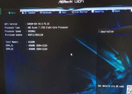 お、BIOS(UEFI)の画面は無事表示されましたね。CPUもメモリもプライスの表記通り認識しています。