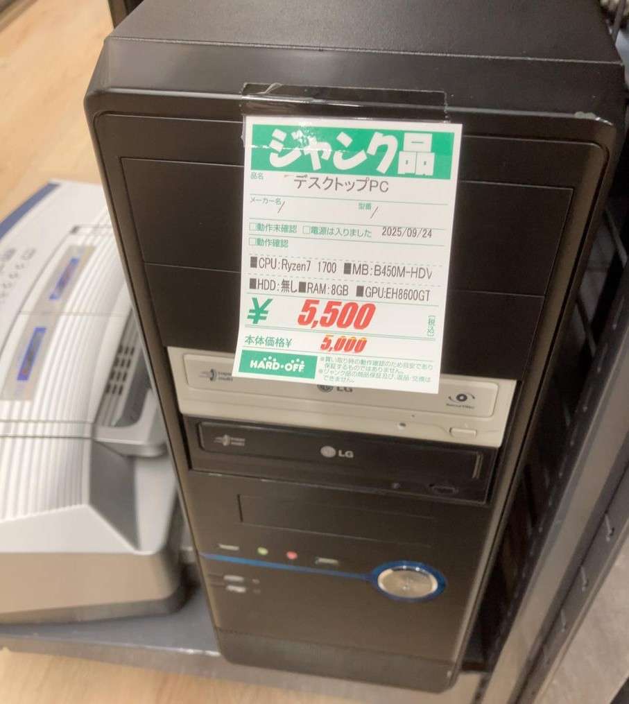 ハードオフにて、お得そうなジャンクPCを発見。値段は5500円とジャンク品にしては微妙な値段ですが、