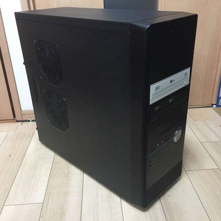 全体はこんな感じ。ATXサイズのケースです。前面にはスーパーマルチドライブが2基搭載。