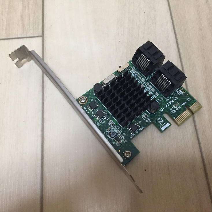後はちょっと用途の分からないボードも挿されていました。SATA端子が裏に4つあり、単なるSATA端子増設カードかとも思いましたが、