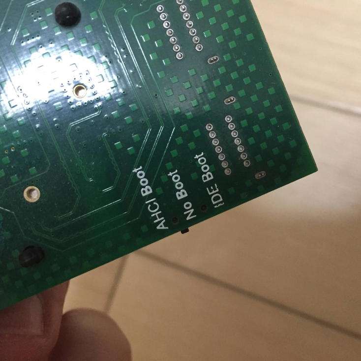 boot設定を変更できるスイッチも搭載されていますので、SATA機器の起動関連のモードを切り替えたりも出来たりするんですかね。ちょっと良く分かりません。