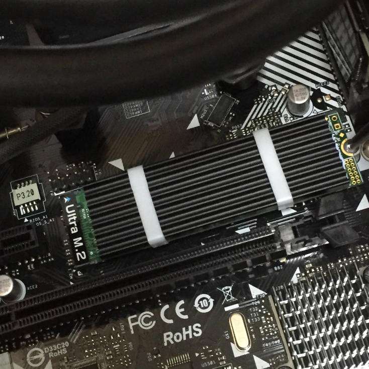 このPCにはM.2スロットが1スロットありますので、早速取付け。もはや起動ドライブはM.2以外は考えられないですよね。
