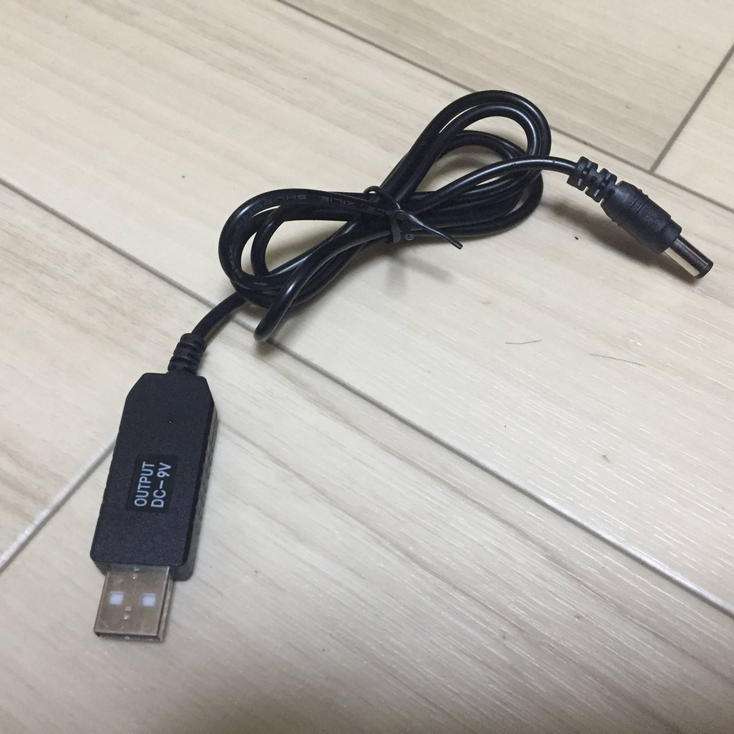 それがこのUSB9V昇圧ケーブルです。ファミコンの純正ACアダプタは正確には10V仕様なのですが、互換品のACアダプタでは普通に9V仕様のものも出回っており1Vの差程度なら特に問題なく動作するようです。