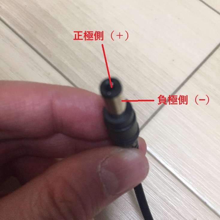 このケーブル実は注意がありまして、出力プラグ端子の極性が”センタープラス”になっており、そのままではファミコンでは使用できません。ファミコンは”センターマイナス”の特殊仕様なので極性を変更してやる必要があります。ここで楽をしたい人は単純に極性変換プラグを探して購入しても良いのですが、自分はなるべく家にある部品でどうにかしたいタイプなので別の方法を。