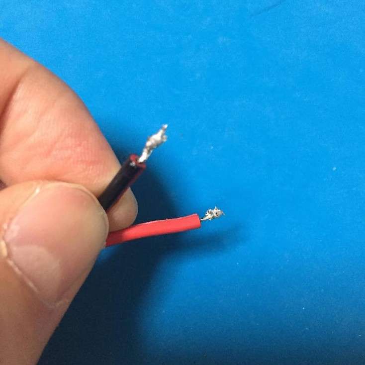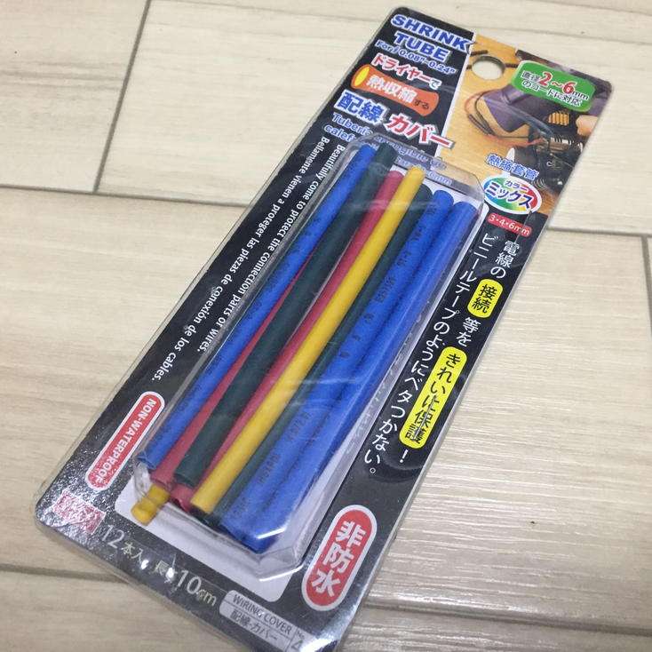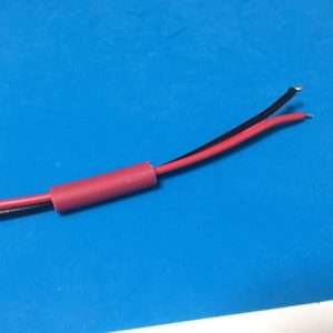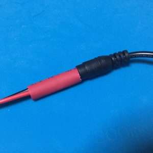 ドライヤーの熱でケーブルを縮ませケーブルを固定します。ちなみに赤いケーブル側はプラグの負極側にしっかり密着する様にしてください。