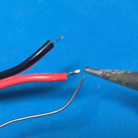 ケーブルの先端の銅線部に厚みを持たせるため、適当にハンダをたっぷり盛っていきます。